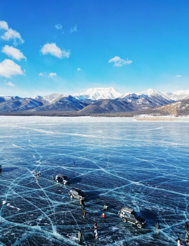 Check out Jargant Lodge and begin a scenic drive south, crossing the breathtaking Jiglig Saddle. By lunchtime, arrive at the legendary frozen Lake Khuvsgul, often called the “Blue Pearl of Mongolia.”